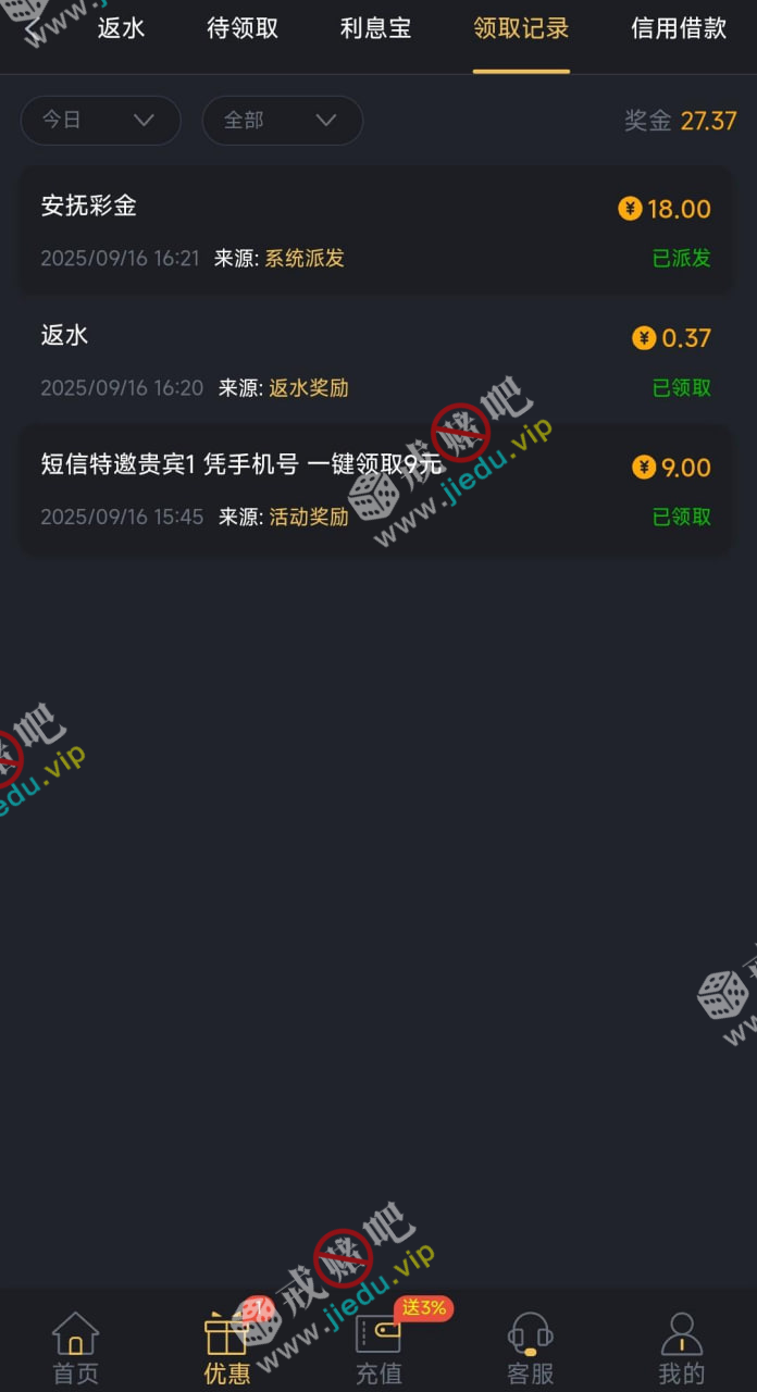 我是去碰碰自助领取的那个彩金 9 块,然后就送了 18 元的安抚彩金,有号的去看看,不知道怎么给我的。