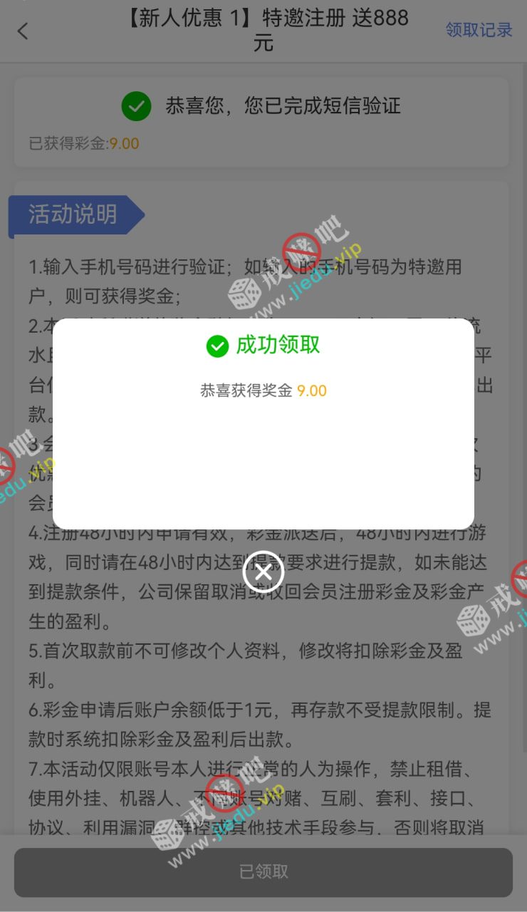 到账情况: 白嫖即可(勿充值)