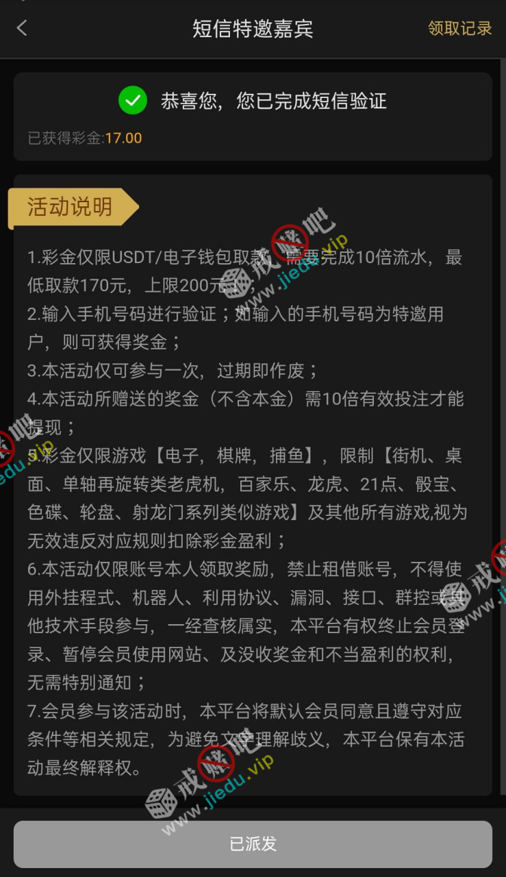 到账情况: 白嫖即可(勿充值)