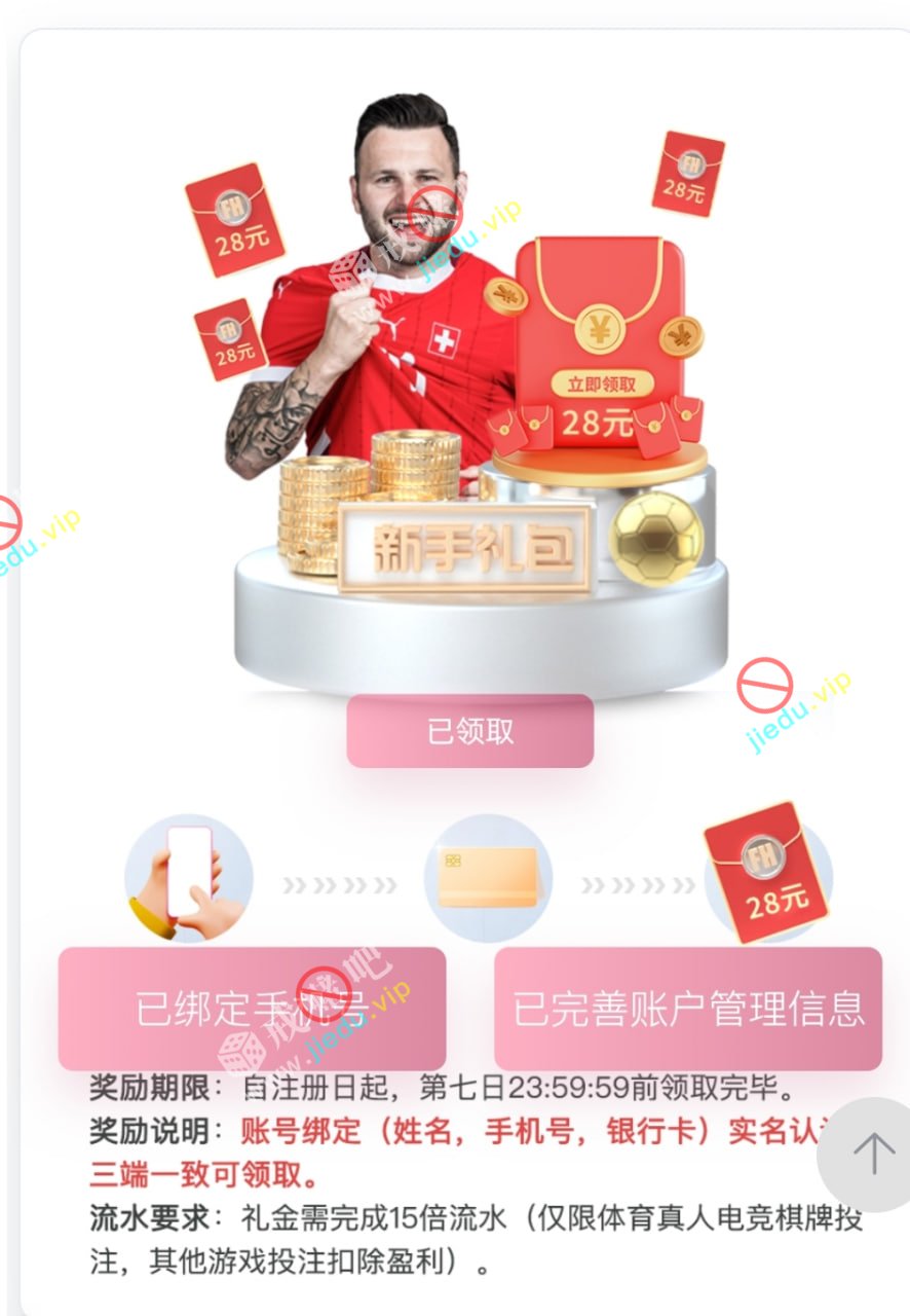 凤凰体育绑卡,绑手机 ,名字,需三端一致,新用户注册绑卡绑定手机号,看图优惠中心自助领取28/100提,彩金只能玩体育真人棋牌。