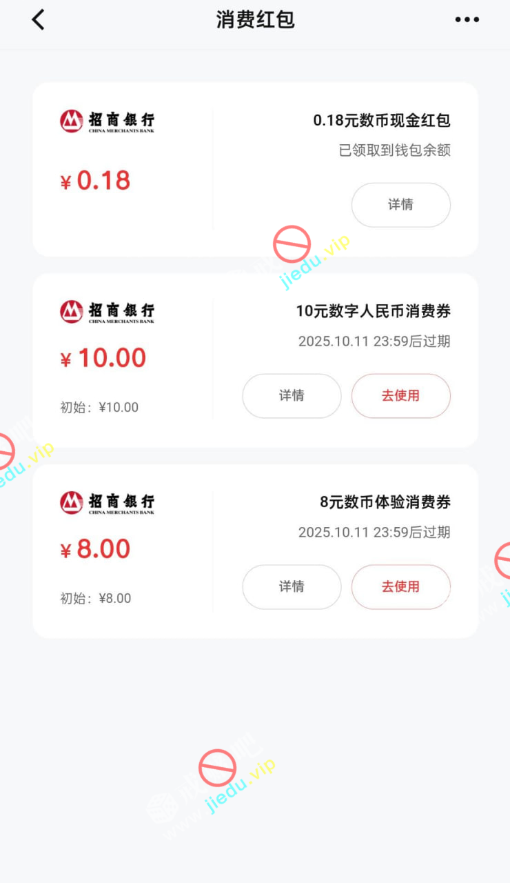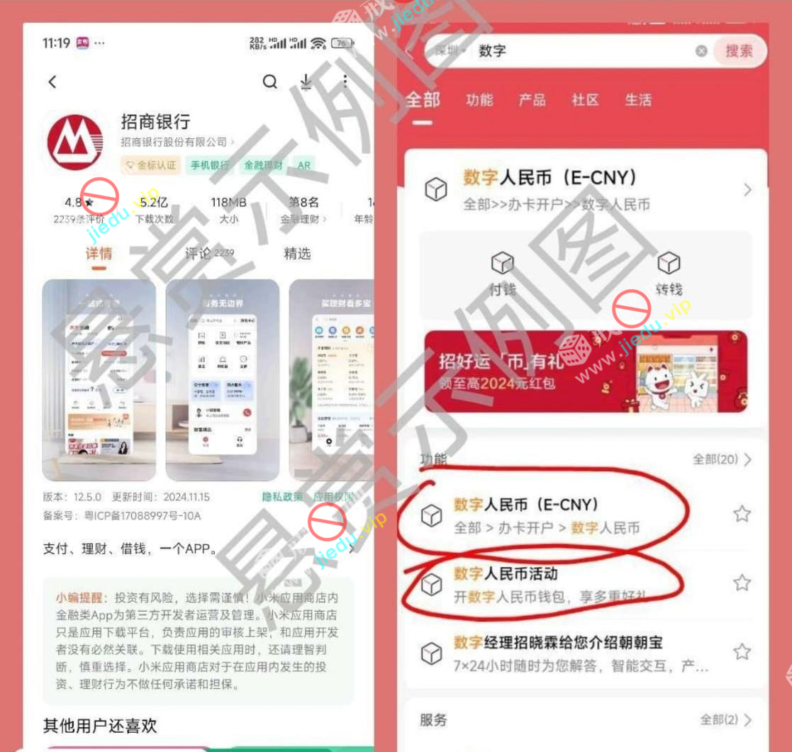 有没有招商银行卡都可以,应用商店下载一一招商银行APP首页搜一一数字!两个入口,先做第一个,再做第二个。两个都是15红包,开通后并升级二类钱包!福个别人可能只有8和5、首次开通招商数字人民币,有15消费红包只有首次开通才有非首次有5或者8或者10,打开招商银行app,首页搜索数字人民币开盲盒,进去支付0.01开盲盒,随便绑一张自己正常用的银行卡就行,开盲盒后一般会得,打开数字人民币点击服务消费红包可以查看刚刚领的红包。