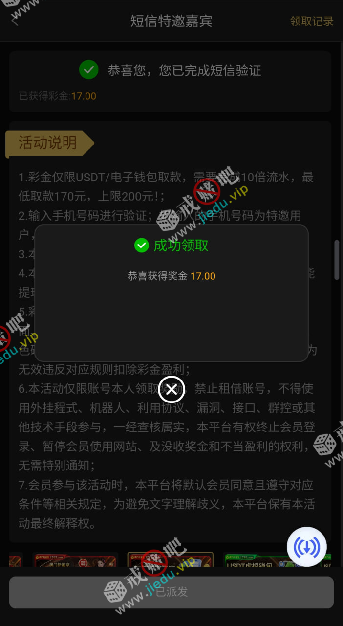 到账情况: 白嫖即可(勿充值)