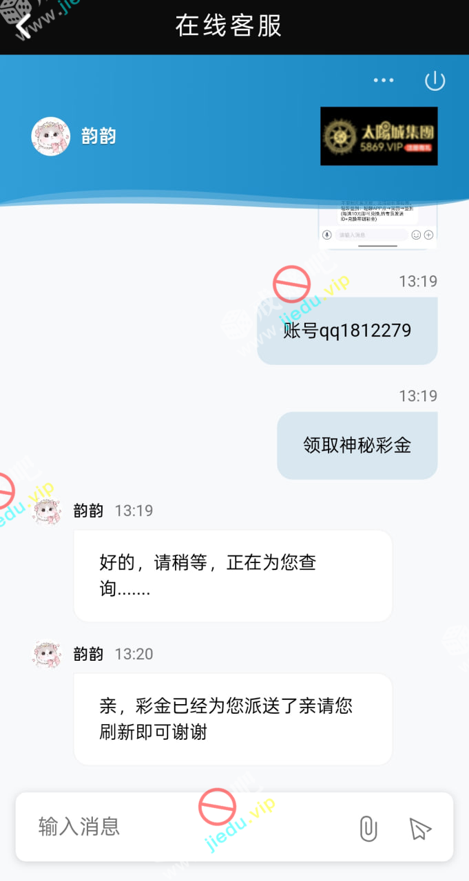 站内信有信息的直接截图发给客服,领取神秘彩金,送的我8,我没充值过老用户去 兄弟们也可以去看看一下 。