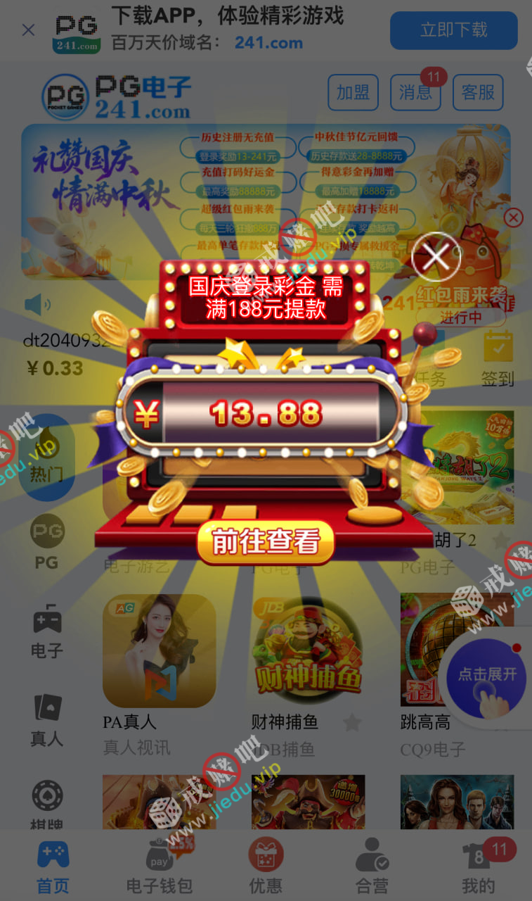 历史无充值得登录就有13 有号的去看看,国庆回馈彩金活动比较多,自己登录查看 。