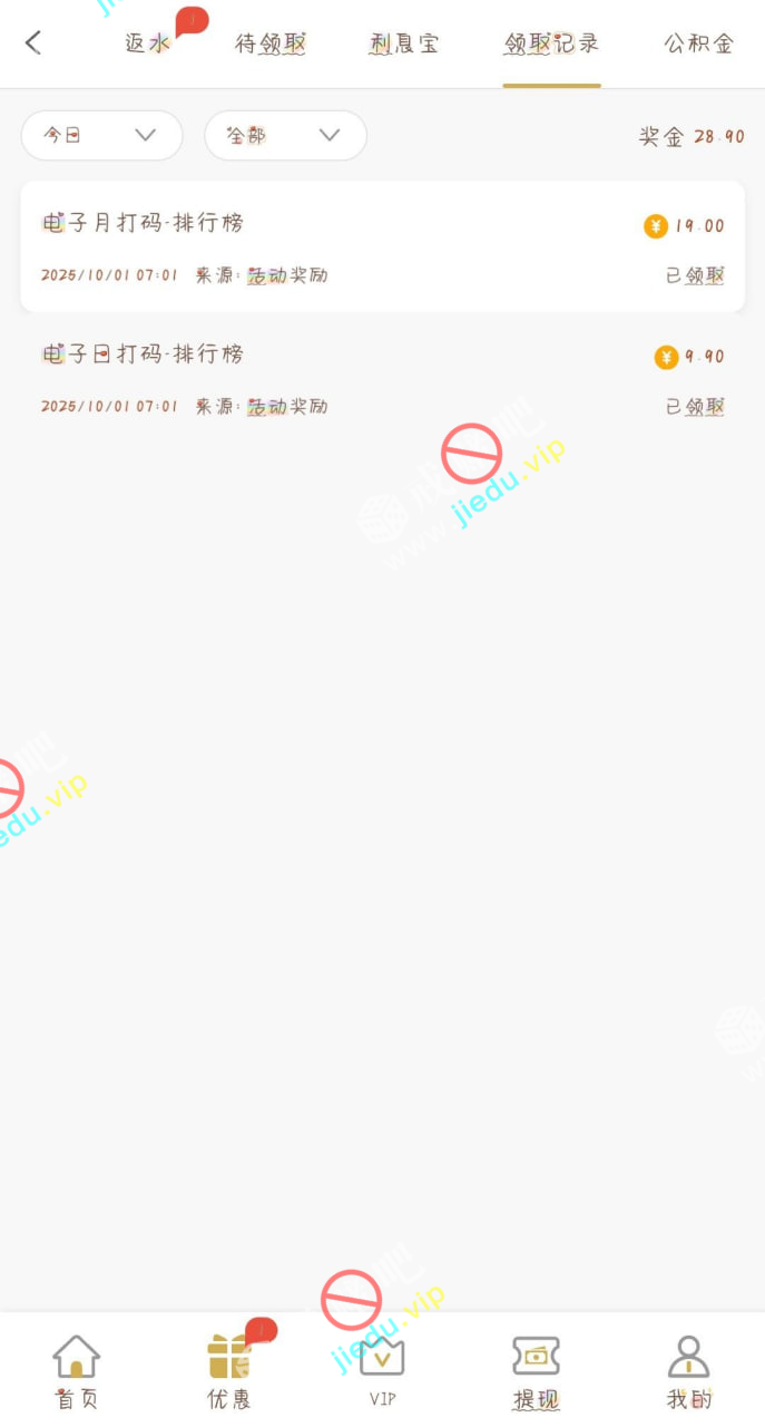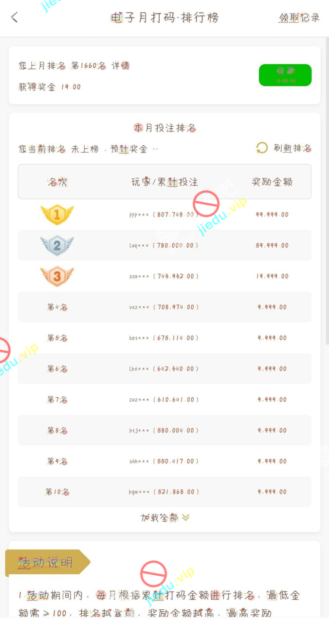 前两天领到58彩金或者充值的打码有个100左右都能领到日打码和月打码,我没充值过我也是领到58彩金打的100多流水就领到了,在待领取里面看,白嫖即可误充值 。