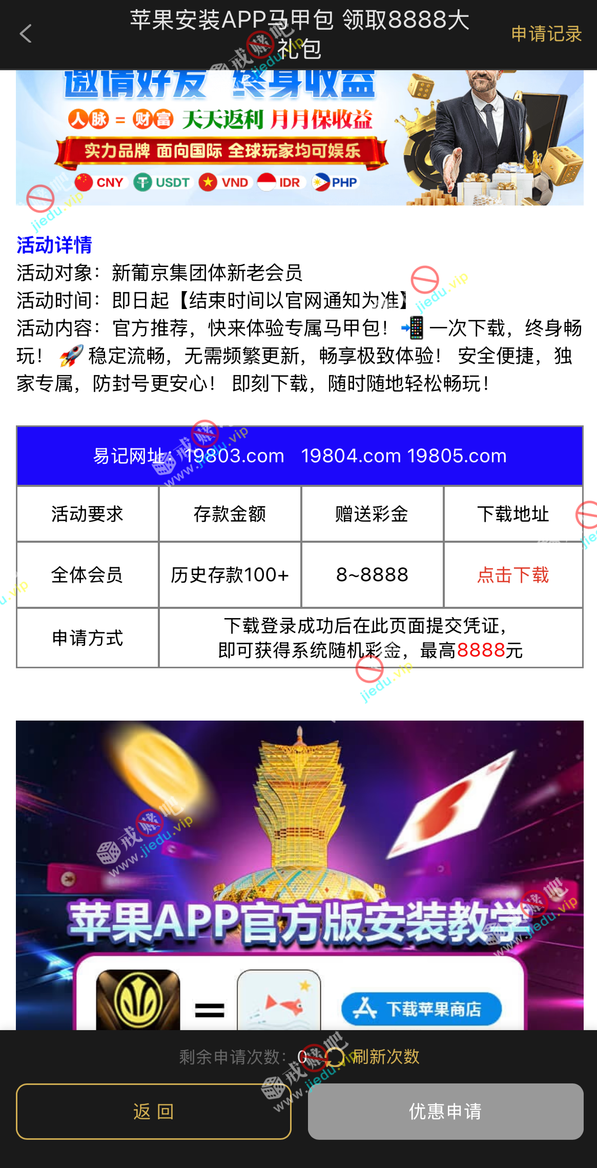 在优惠活动综合里面自己申请,要求及时充值100+,下载苹果马甲包,用马甲包登录截图上传可以领8-8888。